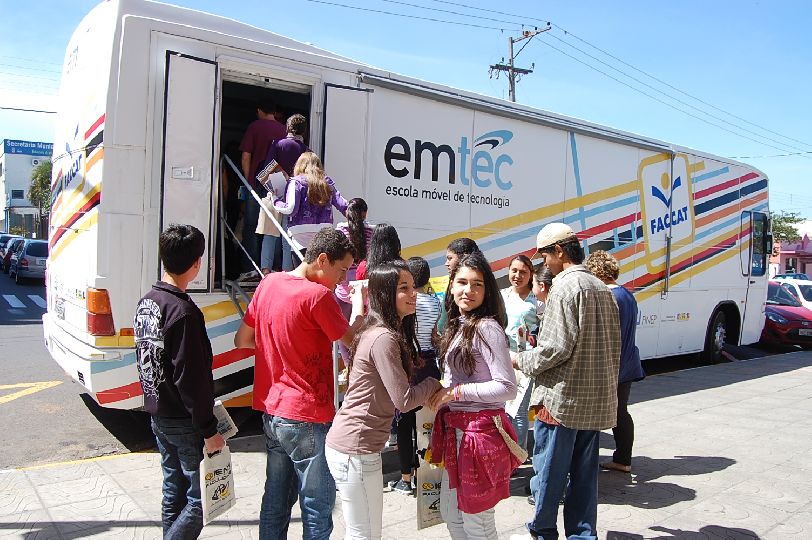 A Faccat marcou presença divulgando suas opções de cursos de graduação. Um dos destaques da feira foi a Escola Móvel de Tecnologia (EMTEC), da Faccat. Montada em um ônibus adaptado (foto), no interior da escola estavam expostos protótipos demonstrativos das diferentes áreas da engenharia. A novidade, que atraiu estudantes e também outros visitantes da feira, incluiu visitas orientadas, conduzidas pelo Eng. Flávio Lucas da Rosa.
