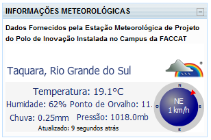 Foi instalada (experimentalmente para pesquisas) uma Estação Meteorológica no campus da FACCAT que já está fornecendo durante as 24 horas dados sobre as condições climáticas.